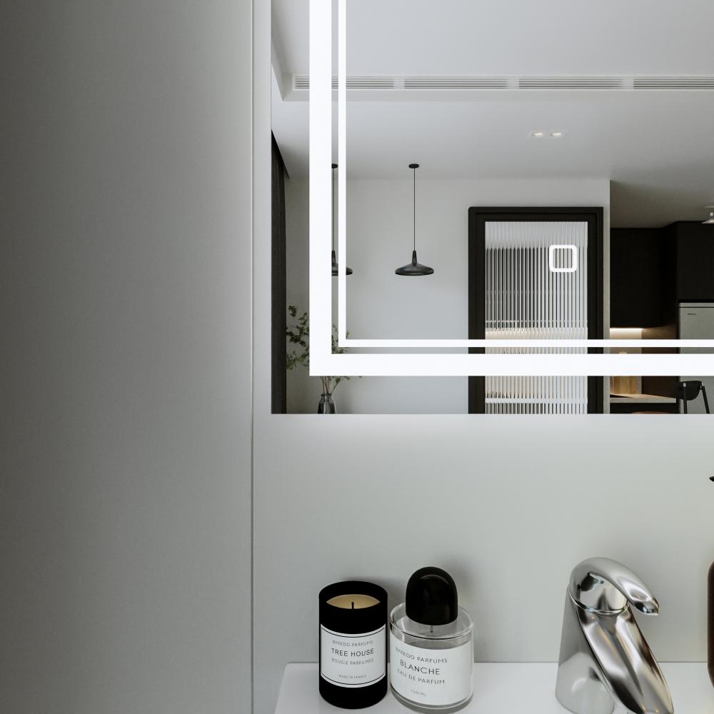Для начала не можем не упомянуть важный момент, с которым сталкиваются многие заказчики: в идеале для установки зеркала с подсветкой нужно предусмотреть вывод провода с напряжением 220 Вольт так, чтобы он находился за будущим зеркалом. При этом можно укомплектовать его разными вариантами выключателей.